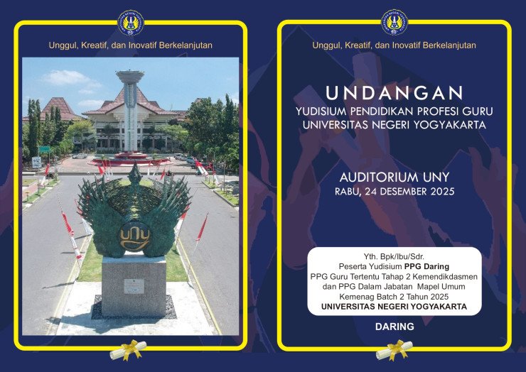 I will be attending the Teacher Professional Education (Pendidikan Profesi Guru) Yudisium at Universitas Negeri Yogyakarta, an official academic recognition ceremony where educators who have completed the professional certification program receive formal acknowledgment for their competence and readiness to contribute meaningfully to the field of education; this event highlights the culmination of rigorous preparation and symbolizes a commitment to advancing teaching quality and professional standards across Indonesia.